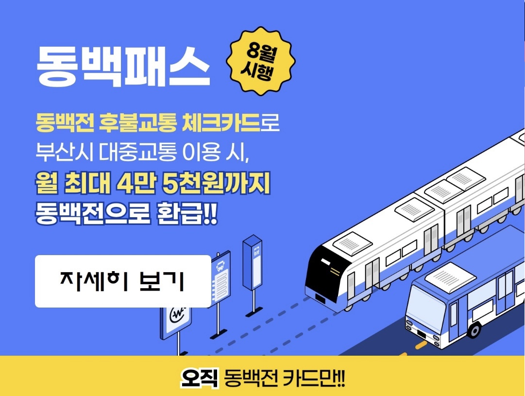 지금까지 부산 대중교통 할인제도 " 동백 패스 " 에 대해 알아보았는데요.