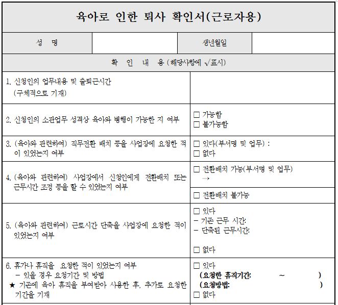 3. 육아로 인한 퇴사 확인서 (근로자용)