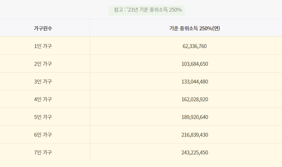 3. 가구원 수에 따른 중위소득 250% 이하