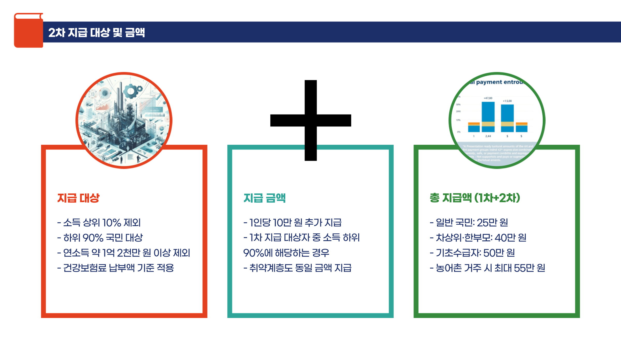 2. 1차 지급 대상 및 금액전 국민을 대상으로 지급되며 취약계층 및 한부모 가족에게는 추가 지급됩니다.